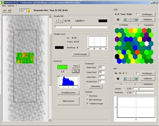 In vielen Produktionsprozessen spielt ein gleichbleibendes hohes Qualitätsmaß eine entscheidende Rolle. Bedingt durch natürliche maschinell und materialbedingte Fluktuationen, kann eine moderne Qualitätskontrolle nur mit variablen und höchst adaptierenden Kategorisierungsmaßen gewährleistet werden. Dies ist durch klassische statistische Verfahren oft nicht darstellbar. IngB hat deshalb für einen der größten Papierverwerter eine neuronal basierte Qualitätskontrolle implementiert, welche automatisch hohe, mittlere und nicht akzeptable komplexe Strukturen aus den einzelnen Produkten herausfiltert.